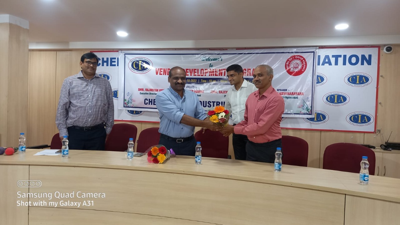 చర్లపల్లి పారిశ్రామిక వాడాలో చర్లపల్లి ఇండస్ట్రీస్ అస్సోసిషన్ ప్రెసిడెంట్ ఆయన Dr కే.గోవిందా రెడ్డి గారి ఆధ్యర్యం లో ఈ రోజు నిర్వహించిన వేండొర్ రిజిస్ట్రేషన్ ఫర్ ఇండస్ట్రీస్ అనే కార్యక్రమములో ముఖ్య అథిది గా శ్రీ. రజనీష్ కుమార్ గారు పాల్గొన్నారు. Dr గోవిందా రెడ్డి గారు మాట్లాడుతూ చర్లపల్లి లో ఉన్న చిన్న మరియు పెద్ద పరిశ్రమలు ఉత్పత్తి చేసిన వస్తువులు ఆర్డర్ లేక వాళ్ళు పడుతున్న ఇబంధులను దృష్టిలో ఉంచుకొని, సౌత్ సెంట్రల్ రైల్వే స్ – రీసెర్చ్ డిజైన్ స్టాండర్డ్స్ ఆర్గనైజషన్ ( RDSO ) ఎగ్జిక్యూటివ్ డైరెక్టర్ గారితో మాట్లాడి ఏ రోజు ఈ సెమినార్ నిర్వహించడం జరిగింది, చర్లపల్లి లో ఉన్న పరిశ్రమకు ఆడర్లు వచ్చే విధానం గా తన వంతు కృషి చేస్తానని చెప్పారు. శ్రీ . రజనీష్ కుమార్ మాటాడుతూ అసలు వేండొర్ రిజిస్ట్రేషన్ ను మనము ఎవరి వద్ద వెళ్ళవలసిన పని లేకుండా ఆన్లైన్ లోనే రిజిస్ట్రేషన్ చేసుకోవచ్చు ని అన్నారు, చర్లపల్లి లో ఉన్న పరిశ్రమలు తమ ఉత్పత్తిని డైరెక్ట్ గా రేల్వే వాళ్ళకి ఏ విదంగా సరఫరా cheyalo పవర్ పాయింట్ ప్రసంటేషన్ ద్యారా వివరించారు . మనం ఉత్పత్తి చేసిన వస్తువులు మనమే ఆన్లైన్ లో సౌత్ , నార్త్ లో కూడా డైరెక్టుగా ఆర్డర్ తీసుకునే విదంగా లైవ్ లో చూపించారు. ఈ కార్యక్రమములో .. చంద్ర శేఖర్ రెడ్డి, రోసి రెడ్డి, వెంకటరత్నం ,విశ్వేశ్వర రావు , రమేష్ కృష్ణ ,Dr సత్యనారాయణ ,జలంధర్ రెడ్డి ,గంగాధర్ బాబు, సురేష్ ,శ్రీనివాస్ ,రాఘవయ్య ,మల్లికార్జున రెడ్డి, నిశాంత్ , మరియు పారిశ్రామిక వెతలు పాల్గొన్నారు. ..